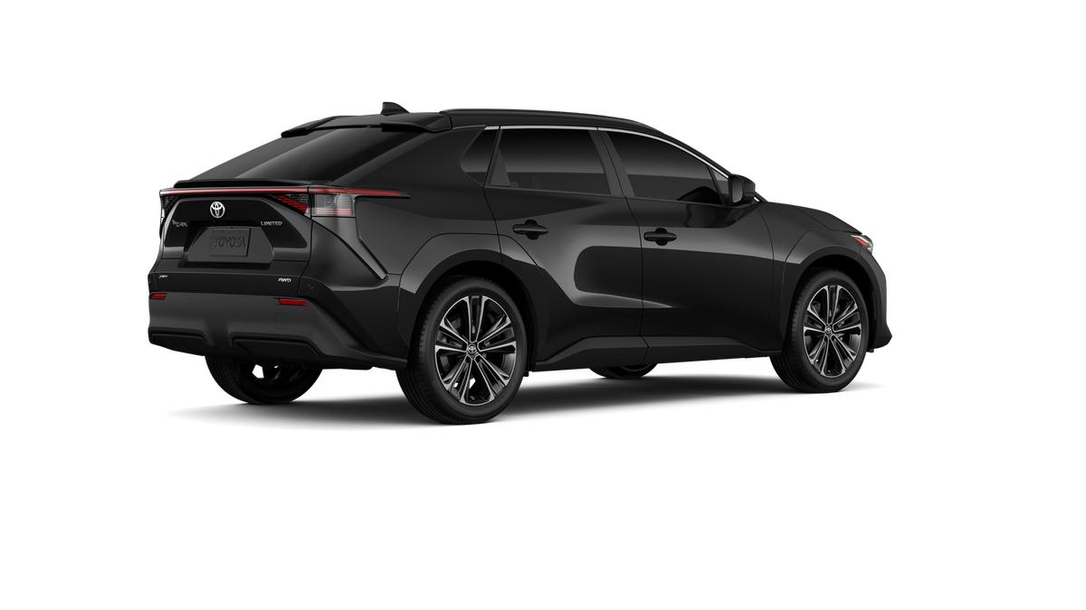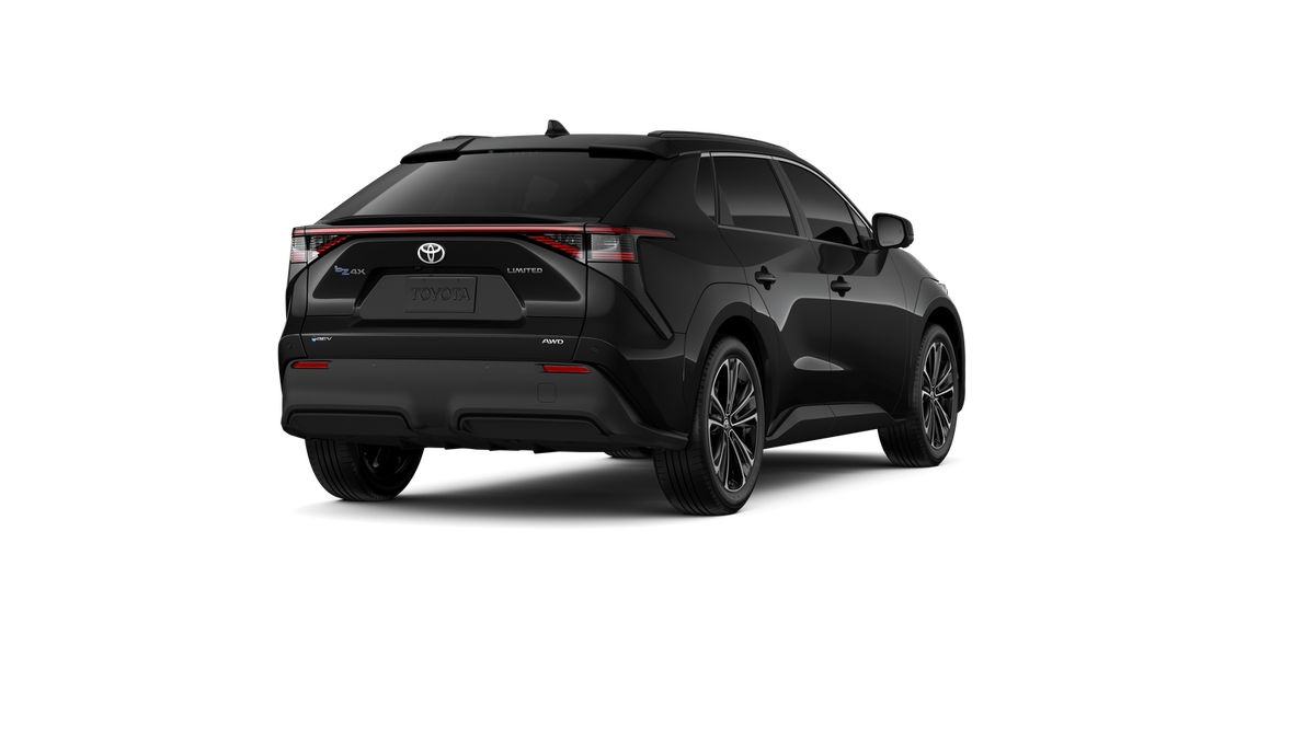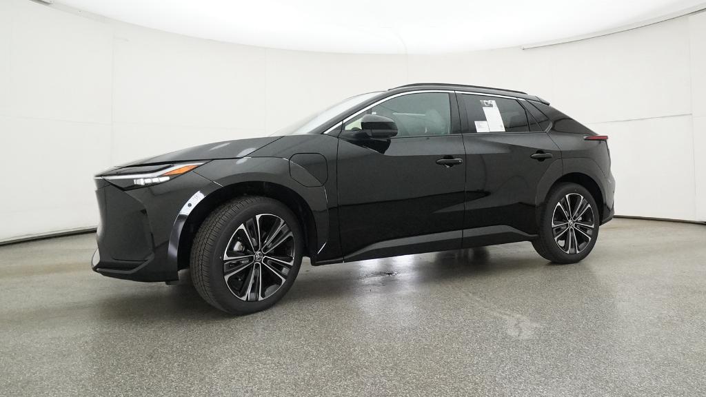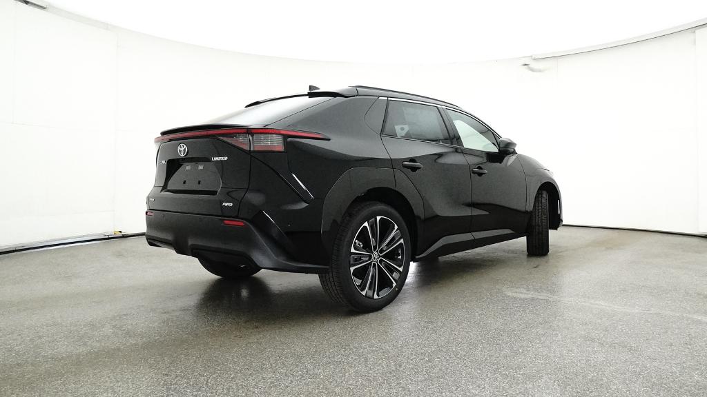 Black 2025 Toyota bZ4X Limited AWDWheel Locks included, All Windows Ceramic tint included, All weather Floor Mats, Sunroof, Backup Camera, Push Button Start, Navigation, Heated Leather Seats, Cooled Seats, Apple Car Play/ Android Auto, Touchscreen Display, Bluetooth, Keyless Entry, Power Seats, Cruise Control, Rhino Bed Liner, Fog Lights, Dual Temperature Control, Alloy Wheels, 4-Wheel Disc Brakes, 6 Speakers, ABS brakes, Air Conditioning, Alloy wheels, AM/FM radio: SiriusXM, Apple CarPlay/Android Auto, Auto High-beam Headlights, Auto-dimming Rear-View mirror, Automatic temperature control, Brake assist, Bumpers: body-color, Delay-off headlights, Driver door bin, Driver vanity mirror, Dual front impact airbags, Dual front side impact airbags, Electronic Stability Control, Emergency communication system: Safety Connect (10-year trial), Exterior Parking Camera Rear, Four wheel independent suspension, Front anti-roll bar, Front Bucket Seats, Front Center Armrest, Front dual zone A/C, Front reading lights, Fully automatic headlights, Garage door transmitter: HomeLink, Heated & Ventilated Front Seats, Heated door mirrors, Heated front seats, Heated steering wheel, Illuminated entry, Knee airbag, Leather steering wheel, Low tire pressure warning, Navigation system: Drive Connect (3 year trial) includes Cloud Navigation with real time traffic and Google POI, Occupant sensing airbag, Outside temperature display, Overhead airbag, Overhead console, Panic alarm, Passenger door bin, Passenger vanity mirror, Power door mirrors, Power driver seat, Power Liftgate, Power steering, Power windows, Radio data system, Radio: 12.3" Toyota Audio Multimedia w/6 Speakers, Rain sensing wipers, Rear anti-roll bar, Rear seat center armrest, Rear window defroster, Remote keyless entry, Security system, SofTex Seat Trim, Speed control, Speed-sensing steering, Split folding rear seat, Spoiler, Steering wheel mounted audio controls, Telescoping steering wheel, Tilt steering wheel, Traction control, Trip computer, Turn signal indicator mirrors, Variably intermittent wipers, Ventilated front seats, Wheels: 20" Multi-Spoke Machine-Finished Alloy. 112/92 City/Highway MPG Electric Motor4-Wheel Disc Brakes, 6 Speakers, ABS brakes, Air Conditioning, Alloy wheels, AM/FM radio: SiriusXM, Apple CarPlay/Android Auto, Auto High-beam Headlights, Auto-dimming Rear-View mirror, Automatic temperature control, Brake assist, Bumpers: body-color, Delay-off headlights, Driver door bin, Driver vanity mirror, Dual front impact airbags, Dual front side impact airbags, Electronic Stability Control, Emergency communication system: Safety Connect (10-year trial), Exterior Parking Camera Rear, Four wheel independent suspension, Front anti-roll bar, Front Bucket Seats, Front Center Armrest, Front dual zone A/C, Front reading lights, Fully automatic headlights, Garage door transmitter: HomeLink, Heated & Ventilated Front Seats, Heated door mirrors, Heated front seats, Heated steering wheel, Illuminated entry, Knee airbag, Leather steering wheel, Low tire pressure warning, Navigation system: Drive Connect (3 year trial) includes Cloud Navigation with real time traffic and Google POI, Occupant sensing airbag, Outside temperature display, Overhead airbag, Overhead console, Panic alarm, Passenger door bin, Passenger vanity mirror, Power door mirrors, Power driver seat, Power Liftgate, Power steering, Power windows, Radio data system, Radio: 12.3" Toyota Audio Multimedia w/6 Speakers, Rain sensing wipers, Rear anti-roll bar, Rear seat center armrest, Rear window defroster, Remote keyless entry, Security system, SofTex Seat Trim, Speed control, Speed-sensing steering, Split folding rear seat, Spoiler, Steering wheel mounted audio controls, Telescoping steering wheel, Tilt steering wheel, Traction control, Trip computer, Turn signal indicator mirrors, Variably intermittent wipers, Ventilated front seats, and Wheels: 20" Multi-Spoke Machine-Finished Alloy This New Toyota qualifies for