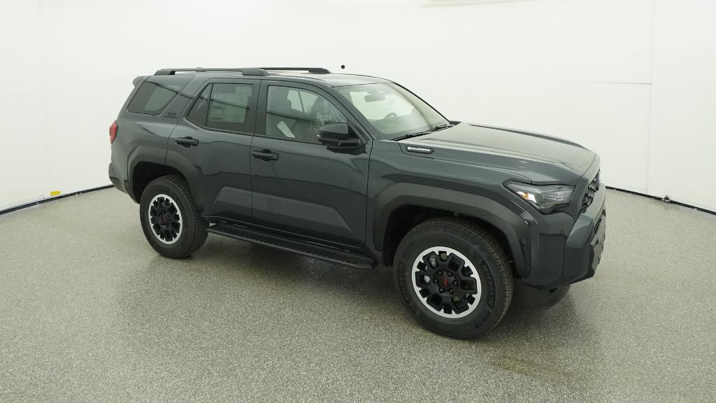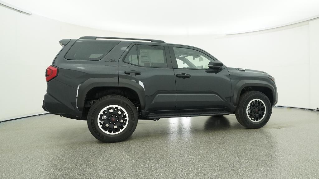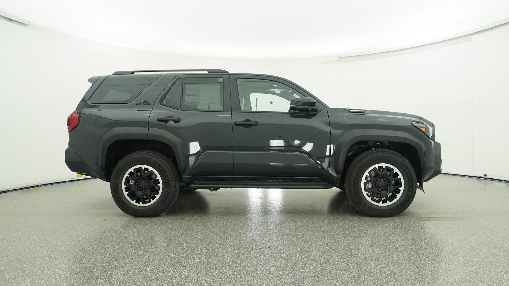 - Black honeycomb-style grille, mirror caps, door handles and overfenders; color-keyed rear spoiler; black "TRD OFF ROAD" and "4RUNNER" badges