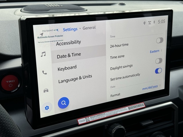 Heated and leather-trimmed power tilt/telescopic steering wheel with audio and Bluetooth® hands-free phone and voice-command controls14-in. Audio Multimedia Display with 14-speaker JBL® Premium Audio system including JBL® FLEX portable Bluetooth® speaker, subwoofer and amplifier, wireless Apple CarPlay® & Android Auto™ compatibility, SiriusXM® 3-month trial. See toyota.com/connected-services for details. -