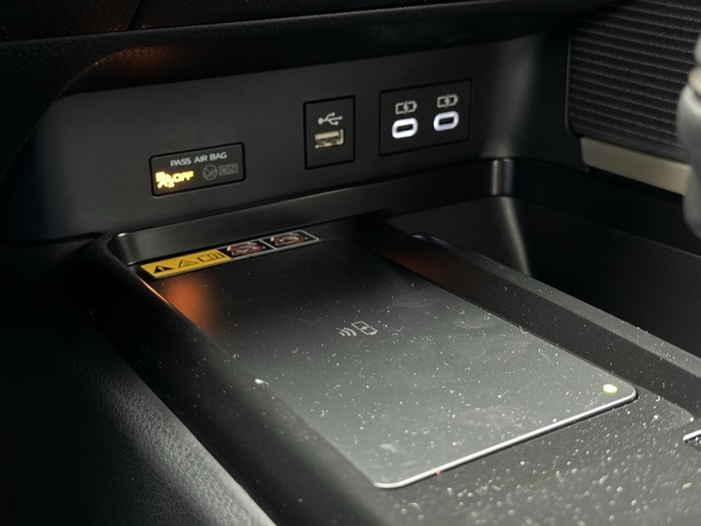- Five USB ports: one USB-A media port and two USB-C charging ports up front, with one USB-A and one USB-C charging port in the rear