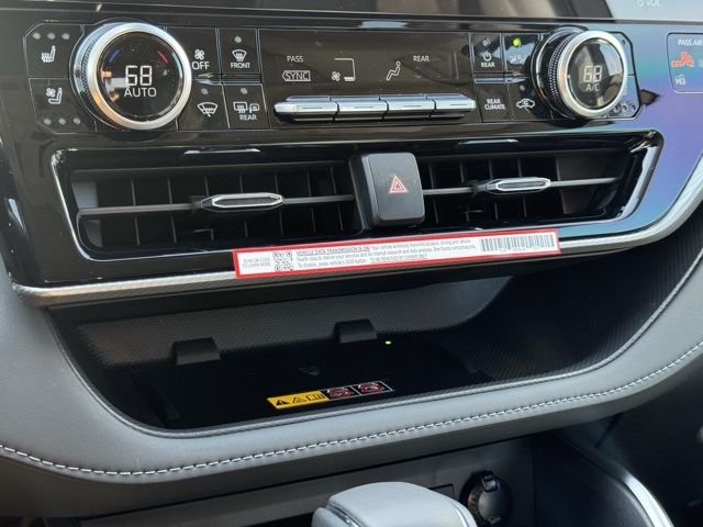 11 Speakers, 3rd row seats: split-bench, 4-Wheel Disc Brakes, ABS brakes, Air Conditioning, Alloy wheels, AM/FM radio: SiriusXM, Apple CarPlay/Android Auto, Auto High-beam Headlights, Auto-dimming Rear-View mirror, Automatic temperature control, Brake assist, Bumpers: body-color, Delay-off headlights, Driver door bin, Driver vanity mirror, Dual front impact airbags, Dual front side impact airbags, Electronic Stability Control, Emergency communication system: Safety Connect (up to 10-year trial subscription), Exterior Parking Camera Rear, Four wheel independent suspension, Front anti-roll bar, Front Bucket Seats, Front Center Armrest, Front dual zone A/C, Front fog lights, Front reading lights, Fully automatic headlights, Garage door transmitter: HomeLink, Heads-Up Display, Heated and Ventilated Front Captain Seats, Heated door mirrors, Heated front seats, Heated rear seats, Heated steering wheel, Illuminated entry, Knee airbag, Leather Seat Trim, Leather Shift Knob, Leather steering wheel, Low tire pressure warning, Memory seat, Navigation system: Drive Connect Cloud Navigation (1-year trial subscription), Occupant sensing airbag, Overhead airbag, Overhead console, Panic alarm, Passenger door bin, Passenger vanity mirror, Power door mirrors, Power driver seat, Power Liftgate, Power moonroof, Power passenger seat, Power steering, Power windows, Radio: 12.3" Toyota Audio Multimedia with JBL Premium Audio, Rain sensing wipers, Rear air conditioning, Rear anti-roll bar, Rear reading lights, Rear window defroster, Rear window wiper, Reclining 3rd row seat, Remote keyless entry, Security system, Speed control, Speed-sensing steering, Split folding rear seat, Spoiler, Steering wheel mounted audio controls, Telescoping steering wheel, Tilt steering wheel, Traction control, Trip computer, Turn signal indicator mirrors, Variably intermittent wipers, Ventilated front seats.