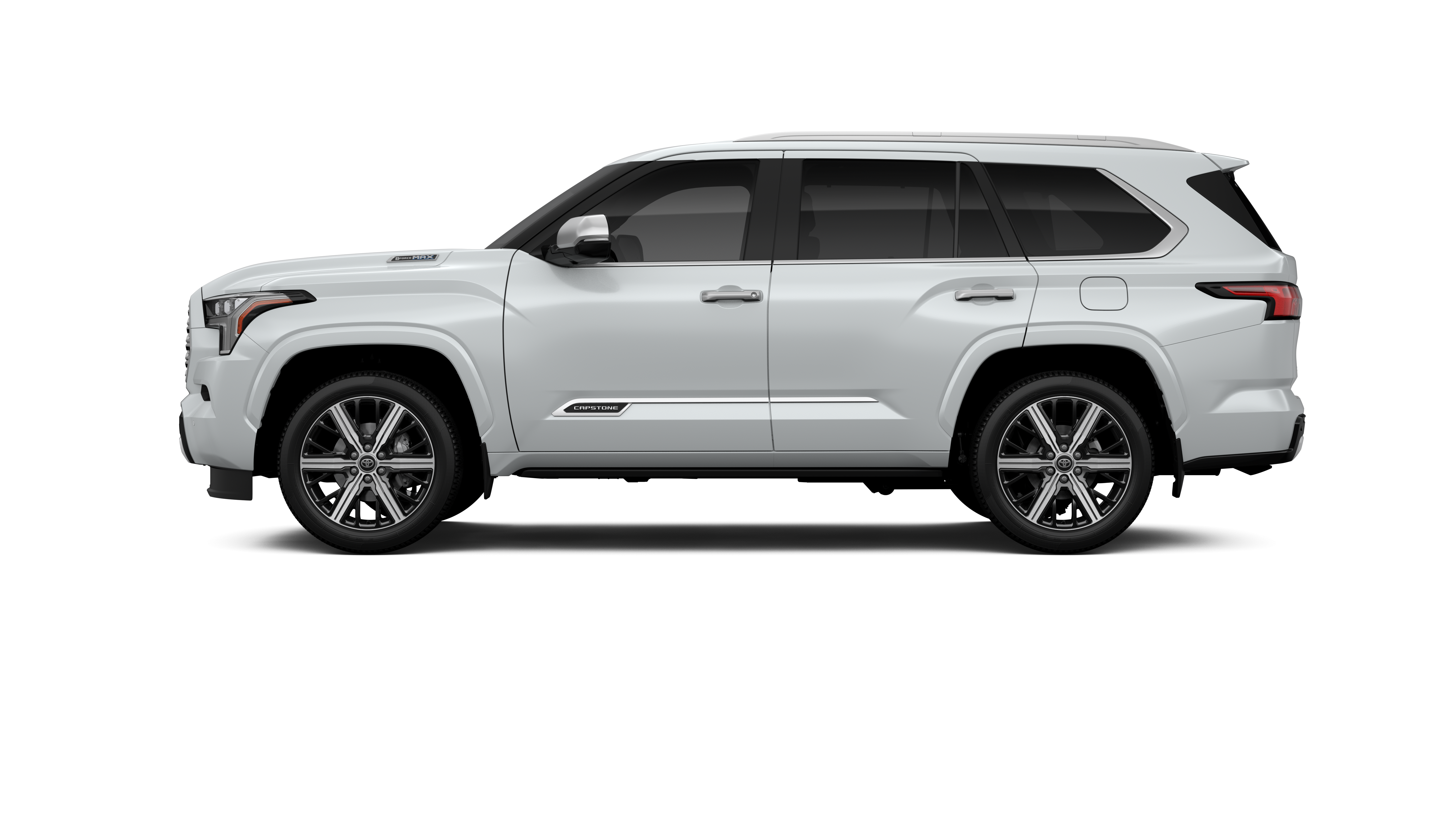 - Bright-chrome "SEQUOIA" rear door badge; chrome "CAPSTONE" door badge, garnish and window molding; color-keyed overfenders