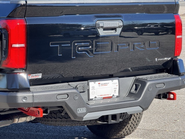 - "TRD Pro" stamped power open-and-close tailgate with hands-free knee-lift assist, integrated taillight bump switches, and jam protection