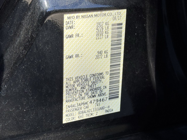 26/37 City/Highway MPG Super Black Clearcoat 2017 Nissan Altima 2.5 SR FWD This vehicle was just detailed for you!