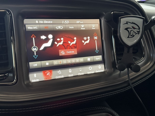 Designed to dominate the road, the Widebody Competition Suspension, 20" x 11.0" Devils Rim Granite Wheels, and Widebody Fender Flares give this Hellcat an aggressive stance and superior handling. Plus, enjoy convenience with Keyless Entry, Backup Camera, Rain-Sensing Wipers, and Auto High Beam Headlamp Control.