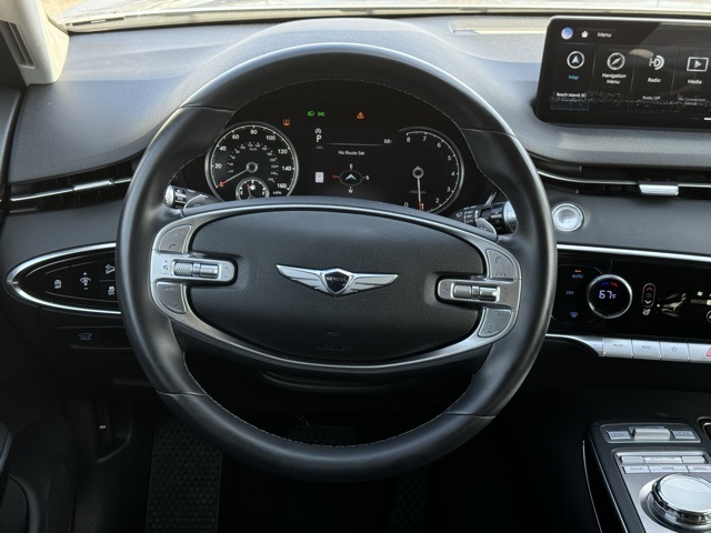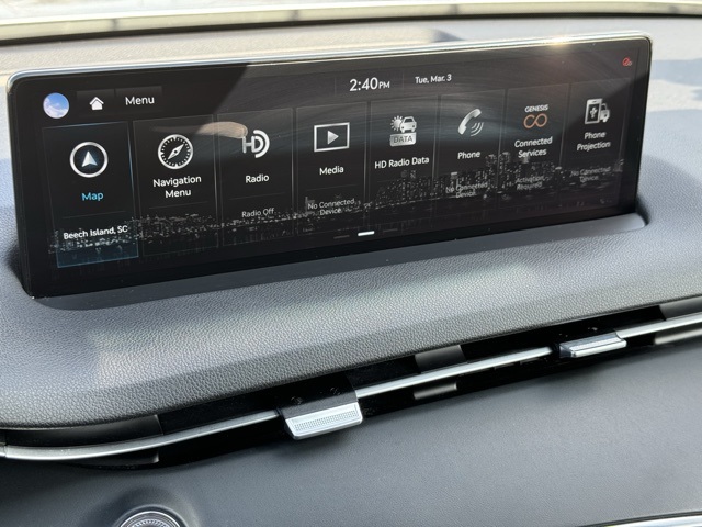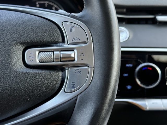 4-Wheel Disc Brakes, 9 Speakers, ABS brakes, Air Conditioning, Alloy wheels, AM/FM radio: SiriusXM, Android Auto & Apple CarPlay, Anti-whiplash front head restraints, Auto High-beam Headlights, Auto-dimming Rear-View mirror, Automatic temperature control, Bumpers: body-color, Delay-off headlights, Driver door bin, Driver vanity mirror, Dual front impact airbags, Dual front side impact airbags, Emergency communication system: Genesis Connected Services, Exterior Parking Camera Rear, Four wheel independent suspension, Front anti-roll bar, Front Bucket Seats, Front Center Armrest w/Storage, Front dual zone A/C, Front reading lights, Fully automatic headlights, Garage door transmitter: HomeLink, Heated door mirrors, Heated Front Bucket Seats, Heated front seats, Illuminated entry, Knee airbag, Leather steering wheel, Leatherette Seating Surfaces, Low tire pressure warning, Occupant sensing airbag, Option Group 01, Outside temperature display, Overhead airbag, Overhead console, Panic alarm, Passenger door bin, Passenger vanity mirror, Power door mirrors, Power driver seat, Power Liftgate, Power passenger seat, Power steering, Power windows, Radio: 14.5" Navigation System w/AM/FM/HD Radio, Rain sensing wipers, Rear anti-roll bar, Rear Parking Sensors, Rear reading lights, Rear seat center armrest, Rear window defroster, Rear window wiper, Remote keyless entry, Security system, Speed control, Speed-sensing steering, Speed-Sensitive Wipers, Split folding rear seat, Spoiler, Steering wheel mounted audio controls, Tachometer, Telescoping steering wheel, Traction control, Trip computer, Turn signal indicator mirrors, Variably intermittent wipers.